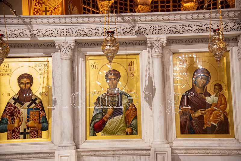 Ο Μεγαλομάρτυρας Δημήτριος λαμβάνοντας τις ικεσίες των προστρεχόντων σε αυτόν, δίνει τη δική του ευλογία με την από αιώνες προσφορά του θαυματουργού του Μύρου.