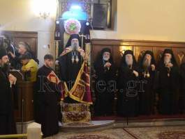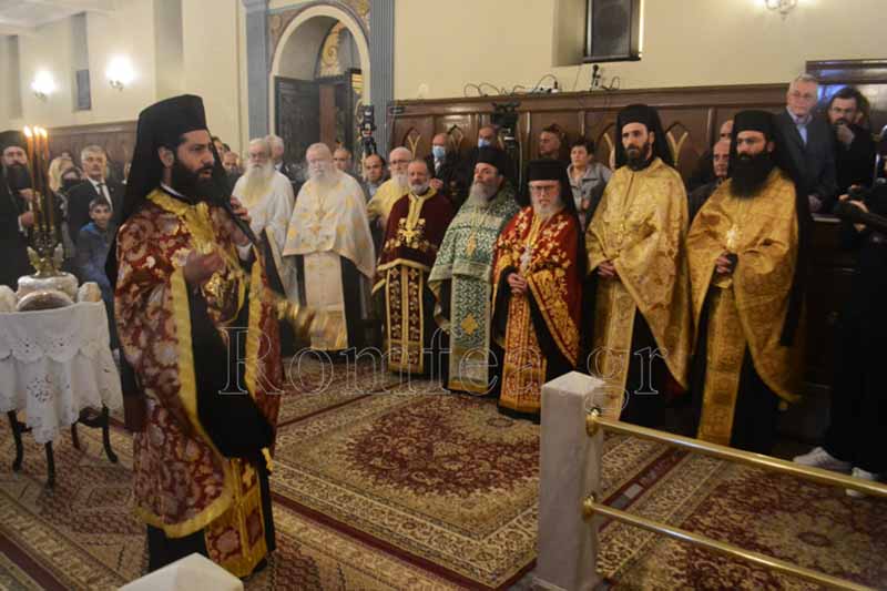 Οι λατρευτικές εκδηλώσεις προς τιμήν του πολιούχου της πόλεως ξεκίνησαν με τον μέγα πολυαρχιερατικό πανηγυρικό εσπερινό στον Ιερό Ναό της Αγίας Κυριακής.