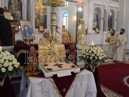 Στην Θεία Λειτουργία προεξήρχε ο Σεβ. Μητροπολίτης Κορίνθου κ. Διονύσιος και συλλειτούργησαν οι Σεβ. Μητροπολίτες, Κεφαλληνίας κ. Δημήτριος, Μάνης κ. Χρυσόστομος, ο Θεοφιλέστατος Επίσκοπος Λακεδαιμονίας κ. Θεόφιλος, βοηθός Επίσκοπος του Σεβ. Μητροπολίτου Μονεμβασίας και Σπάρτης κ. Ευσταθίου, και ο οικείος Μητροπολίτης Ηλείας και Ωλένης κ. Αθανάσιος ο Β'.