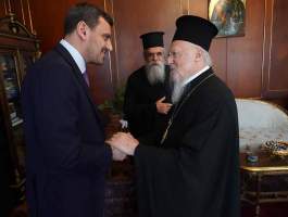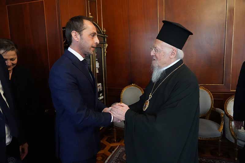 Συνάντηση με την Α.Θ. Παναγιότητα τον Οικουμενικό Πατριάρχη κ.κ. Βαρθολομαίο είχαν το Σάββατο, 2 Μαρτίου 2024, ο Σεβ. Μητροπολίτης Ηλείας και Ωλένης κ. Αθανάσιος, ο Υφυπουργός Προστασίας του Πολίτη Εξοχ. κ. Ανδρέας Νικολακόπουλος, οι Εντιμ. Δήμαρχοι Αρχαίας Ολυμπίας κ. Αριστείδης Παναγιωτόπουλος, Πύργου κ. Ευστάθιος Καννής, και Ανδραβίδας-Κυλλήνης κ. Ιωάννης Λέντζας, καθώς και ο Εντιμ. Πρόεδρος του Ελληνοϊταλικού Επιμελητηρίου κ. Ιωάννης Τσαμίχας, οι οποίοι επισκέφθηκαν την Έδρα του Οικουμενικού Πατριαρχείου μαζί με συνεργάτες τους.