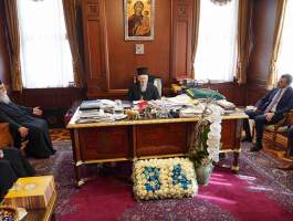 Στη συνέχεια ο Παναγιώτατος είχε σύντομη κατ’ ιδίαν συνάντηση με τον Εξοχ. κ. Υφυπουργό, τον οποίο συνεχάρη για την πρόσφατη ανάληψη των πολυεύθυνων καθηκόντων που του εμπιστεύθηκε ο Εξοχ. Πρωθυπουργός της Ελλάδος.