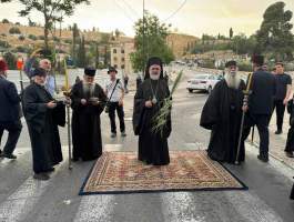 Τό ἑσπέρας τοῦ Σαββάτου τοῦ Λαζάρου, 14ην /27ην Ἀπριλίου 2024, ἡ Α.Θ.Μ. ὁ Πατήρ ἡμῶν καί Πατριάρχης Ἱεροσολύμων κ.κ. Θεόφιλος ηὐλόγησε τά βαΐα εἰς τήν Βηθσφαγῆν