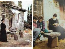 Σκέφτομαι και δεν ανοίγω. Στην Τρίτη φορά που χτύπησε άνοιξε μ ό ν η της η π ό ρ τ α που είχε σύρτη από μέσα. Άκουσα βήματα στον διάδρομο. Πετάχτηκα από το Κελί μου και βλέπω μια γυναίκα με μανδήλα. Την συνόδευε κάποιος που έμοιαζε με τον Ευαγγελιστή Λουκά, ο οποίος εξαφανίστηκε!. Παρόλο που ήμουν σίγουρος ότι δεν είναι του πειρασμού, γιατί λαμποκοπούσε, την ρώτησα ποια είναι.