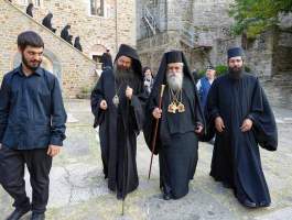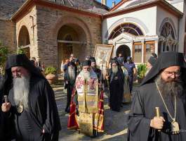 Φωτοθήκη από την πρόσφατη επίσημη προσκυνηματική επίσκεψη του Σεβασμιωτάτου Μητροπολίτου μας κκ ΑΘΑΝΑΣΙΟΥ Β΄ στην Ιερά Μονή Ιβήρων του Αγίου Όρους για την εορτή της Κοιμήσεως της Θεοτόκου (με το πάτριο ημερολόγιο 28-8-2024) και επίκεντρο των λατρευτικών εκδηλώσεων την περίπυστη και θαυματουργή εικόνα της Παναγίας της Πορταϊτίσσης.