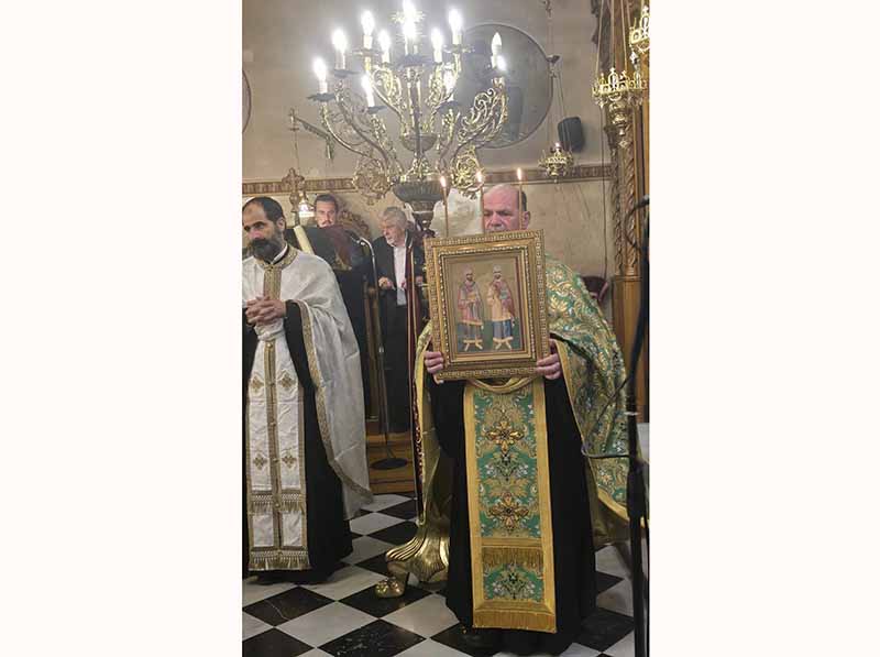 Την Παρασκευή 1η Νοεμβρίου ανήμερα της εορτής, ο Σεβασμιώτατος Μητροπολίτης μας κ.κ. Αθανάσιος, χοροστάτησε στον Όρθρο και τέλεσε την Πανηγυρική Αρχιερατική Θεία Λειτουργία μετ' αρτοκλασιών συνεπικουρούμενος από τον Πανοσιολογιότατο Αρχιμανδρίτη π. Νεκτάριο Μπακόπουλο και τους Αιδ. π. Γρηγόριο Πάπαρη, π. Γεώργιο Τούμπα, π. Αυγερινό Τσουκαλά και τον οικείο Εφημέριο π. Νικόλαο Κατσηδήμα, κηρύσσοντας με πνευματική ενάργεια και τον Θείον Λόγον, εστιάζοντας στον θαυμαστό βίο των Αγίων και τη μεγάλη αγάπη τους για τον Κύριο ημών Ιησού Χριστό και τους πάσχοντας συνανθρώπους, ευχόμενος εκ μέσης καρδίας να είναι πλούσια σε όλους η χάρις των Αγίων και ιδιαίτερα στην εορτάζουσα υγειονομική κοινότητα της Ηλείας αλλά και να κυριαρχήσει το πιο πολύτιμο αγαθό στην γη που είναι η Υγεία!