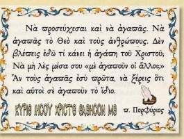Και πάντα εύχομαι τα πνευματικά μου παιδιά να αγαπήσουν το Θεό, που είναι το παν, για να μας αξιώσει να μπούμε στην επίγειο άκτιστη Εκκλησία του. Γιατί από εδώ πρέπει να αρχίσουμε. Εγώ πάντα είχα την προσπάθεια να προσεύχομαι και να διαβάζω τους ύμνους της Εκκλησίας, την Αγία Γραφή και τους βίους των Αγίων μας και εύχομαι και εσείς να κάνετε το ίδιο. Εγώ προσπάθησα με τη χάρη του Θεού να πλησιάσω τον Θεό και εύχομαι και σεις να κάνετε το ίδιο. Παρακαλώ όλους σας να με συγχωρέσετε για ό,τι σας στενοχώρησα. (Ιερομόναχος Πορφύριος». Εν Καυσοκαλυβίοις τη 4/17 Ιουνίου 1991)