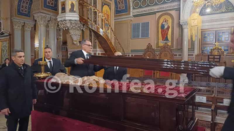 Η σορός του μακαριστού Αρχιεπισκόπου τοποθετήθηκε στο κέντρο του Μητροπολιτικού Ναού, όπου κλήρος και λαός θα μπορέσει να το αποχαιρετήσει για τελευταία φορά του κυρό Αναστάσιο.