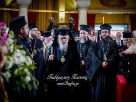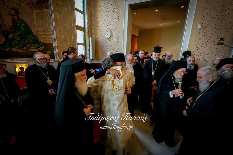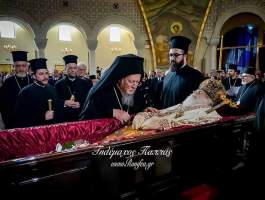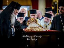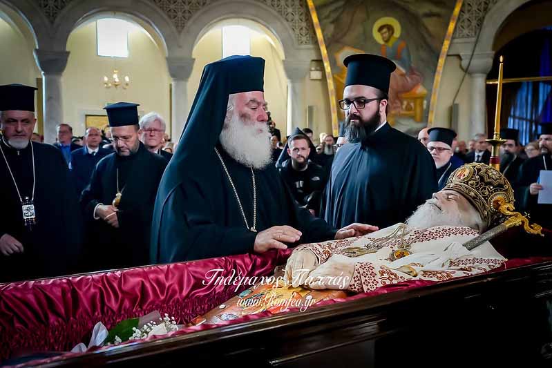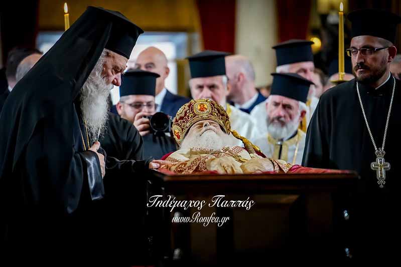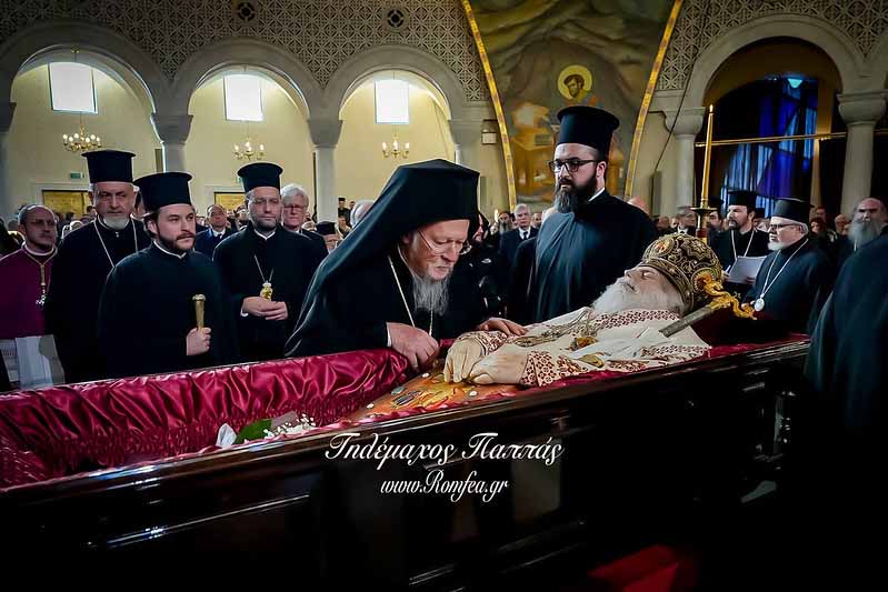 Στην εξόδιο ακολουθία προεξήρχε ο Οικουμενικός Πατριάρχης κ. Βαρθολομαίος, συμπαραστατούμενος από τον Πατριάρχη Αλεξανδρείας κ. Θεόδωρο, τον Πατριάρχη Ιεροσολύμων κ. Θεόφιλο, τον Πατριάρχη Βουλγαρίας κ. Δανιήλ, τον Αρχιεπίσκοπο Κύπρου κ. Γεώργιο, τον Αρχιεπίσκοπο Αθηνών και πάσης Ελλάδος κ. Ιερώνυμο, σύσσωμη την Ιερά Σύνοδο της Εκκλησίας της Αλβανίας και Ιεράρχες των κατά Τόπους Ορθοδόξων Εκκλησιών.