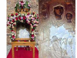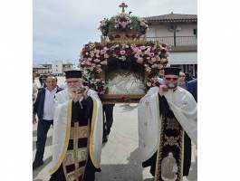 Κατά την Λιτάνευση της ιερής εικόνας η οποία μεταφέρθηκε στον νεοανεγειρόμενο Ιερό Ναό των Αγίων Ισαποστόλων Κωνσταντίνου και Ελένης, με την συνοδεία της Φιλαρμονικής Γαστούνης, την παρουσία των Πολιτικών και Στρατιωτικών αρχών καθώς επίσης και πλήθους ευλαβών και φιλεόρτων Χριστιανών της πόλης της Γαστούνης και της ευρύτερης περιοχής του Δήμου Πηνειού.