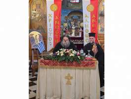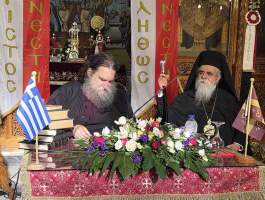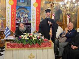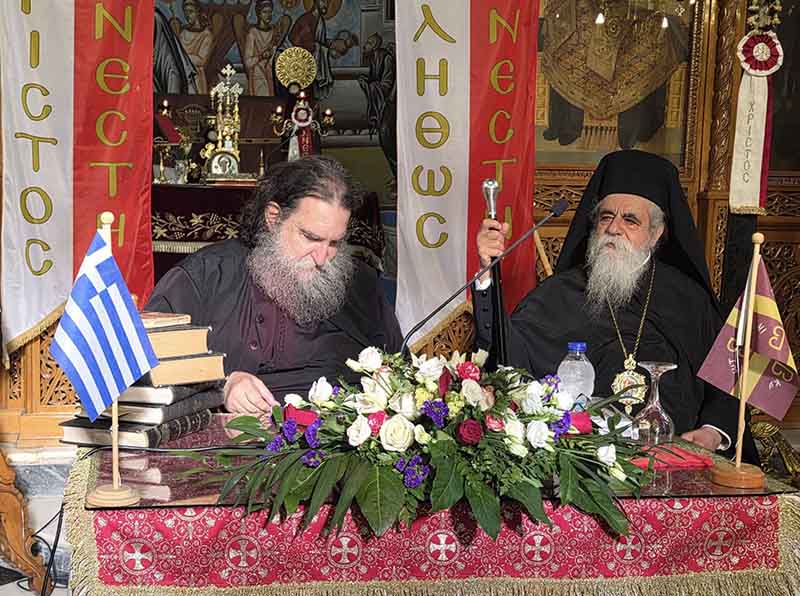Ο Σεβασμιώτατος Μητροπολίτης μας κ.κ. Αθανάσιος στον σύντομο χαιρετισμό του, εξήρε την προσωπικότητα του π. Ευαγγέλου και το Ιεραποστολικό έργο στο Καμερούν, λέγοντας χαρακτηριστικά ότι: «ο π. Ευάγγελος είναι ο άνθρωπος κυρίως που διδάσκει με την ζωή του και το παράδειγμά του και λιγότερο με τον λόγο του. Ο δε λόγος του μπαίνει στις καρδιές των ανθρώπων και δεν φεύγει διότι εκπέμπει λόγο Θεού, που στηρίζει τους ανθρώπους».