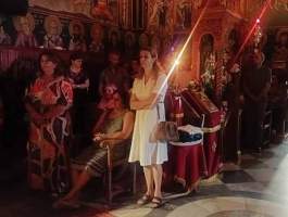 Κατανυκτική ήταν η ακολουθία μέσα στον Ιερό Ναό, φωτισμένο από τα κανδήλια που κρέμονταν μπροστά από την Ωραία Πύλη και στις Εικόνες, από τις λαμπάδες και τα κεράκια! Πραγματικά ένα ουράνιο φώς!