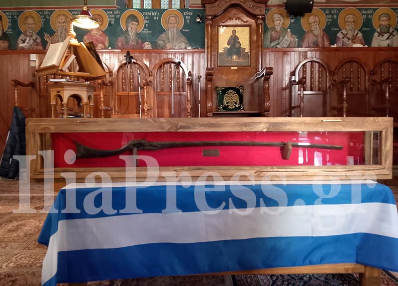 Με ιδιαίτερο σεβασμό, τελέστηκε η κατανυκτική Δοξολογία, στην οποία χοροστάτησε ο σεπτός ποιμενάρχης μας, Μητροπολίτης Ηλείας κ.κ. Αθανάσιος, πλαισιωμένος από σεβαστούς ιερείς της Μητροπόλεως. Στο κέντρο της μικρής εκκλησίας είχε τοποθετηθεί, με σεβασμό και συγκίνηση, το καριοφίλι του Κολοκοτρώνη, από τα κειμήλια της Μονής — ένα σιωπηλό τεκμήριο των ηρώων που πολέμησαν για πατρίδα και πίστη. Σαν να ξυπνούσαν για λίγο οι μνήμες δύο αιώνων.