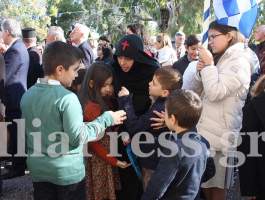 Το στεφάνι της Μονής κατέθεσαν δύο μικρά κοριτσάκια, με βήματα δειλά αλλά γεμάτα σεβασμό και παιδική ευλάβεια.