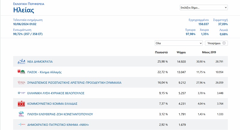 Από τη Νέα Δημοκρατία ο Γιώργος Αυτιάς έχει εξασφαλίσει την πρωτιά, καθώς η διαφορά του από τους συνυποψηφίους του διαρκώς αυξάνεται.
