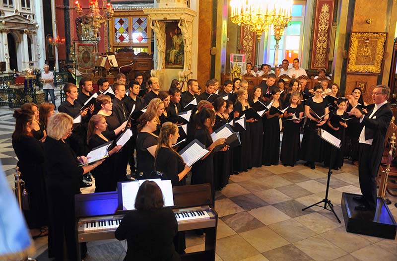 της Βυζαντινής Οκτωήχου, με συνοδό υπέροχο κράτημα(τεριρέμ). Η μουσική πανδαισία ολοκληρώθηκε με τον 135ο ψαλμό, την Δοξολογία του Χουρμουζίου και κορυφώθηκε στην συγκινητική εκτέλεση των ύμνων της Αγίας Αναφοράς «Σε υμνούμεν» και «Άξιον εστίν». Το ατέρμονο χειροκρότημα του πολυπληθούς κοινού που κατέκλυσε το ναό και τα επαινετικά σχόλια των παρευρισκομένων ήταν η καλύτερη δικαίωση για τα μέλη του χορού, πού έκλεψε την μουσική παράσταση.