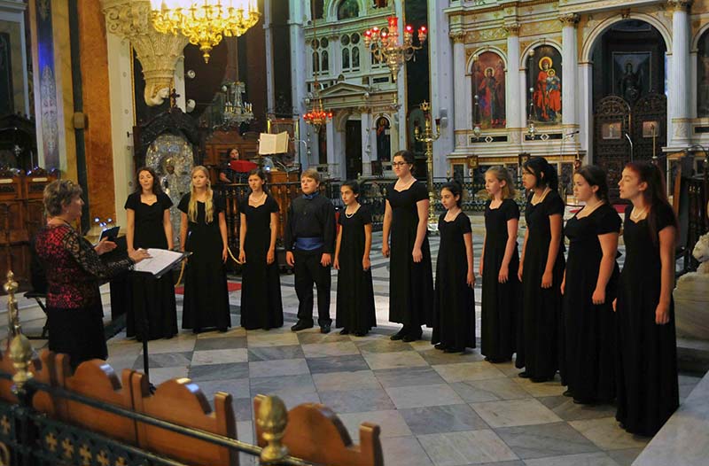 Η χορωδία συμμετείχε επίσης και έψαλλε υπέροχα στην Θεία Λειτουργία, που πραγματοποιήθηκε στον ίδιο ναό την Κυριακή το πρωί, στις 19 Ιουλίου,