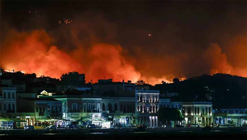 Η φωτιά εξακολουθεί να μαίνεται ανεξέλεγκτη, απειλώντας σπίτια και ξενοδοχειακές μονάδες.