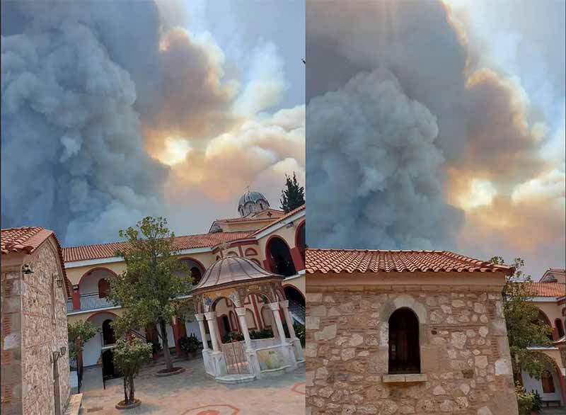 Στην Μονή παρέμειναν 3 πατέρες με άνδρες της πυροσβεστικής…