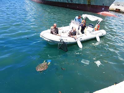 Με επιτυχία στέφθηκε η επιχείρηση διάσωσης τραυματισμένης θαλάσσιας χελώνας Caretta caretta που εντοπίστηκε στο βόρειο λιμάνι της Πάτρας.