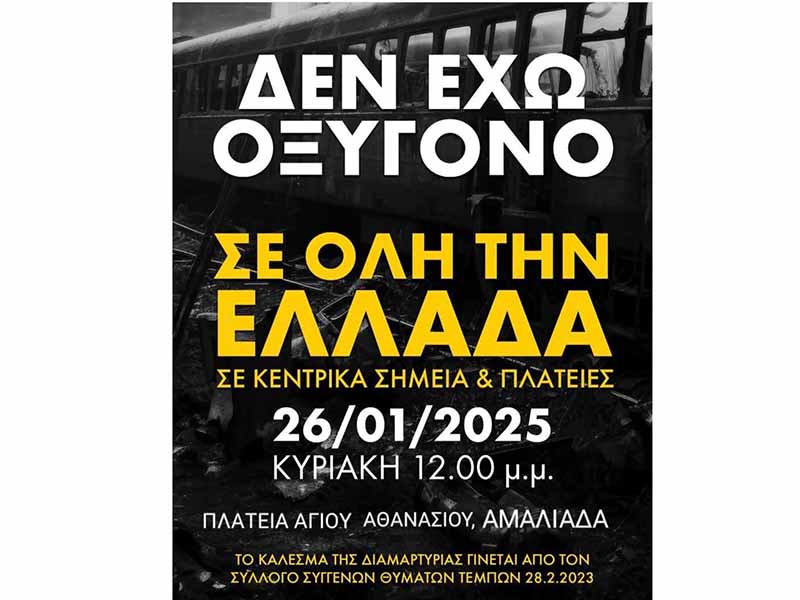 Μπαράζ συγκεντρώσεων διαμαρτυρίας για τα Τέμπη την Κυριακή 26 Ιανουαρίου σε όλη την Ελλάδα αλλά και σε δεκάδες πόλεις του εξωτερικού, από τους Έλληνες που ζουν εκεί.