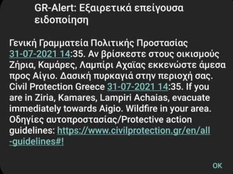 Τα μηνύματα από το 112 για απομάκρυνση των κατοίκων είναι συνεχή.