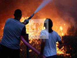 Ώρα 22:10: Στις φλόγες παραδόθηκαν σπίτια στο ρέμα κοντά στον κόμβο Καλυφτάκη. Κάτοικοι της περιοχής προσπαθούν με λάστιχα και ό,τι άλλο μπορούν να σβήσουν τη φωτιά που πέρασε μέσα στο ρέμα, καίγοντας τις περιουσίες τους.