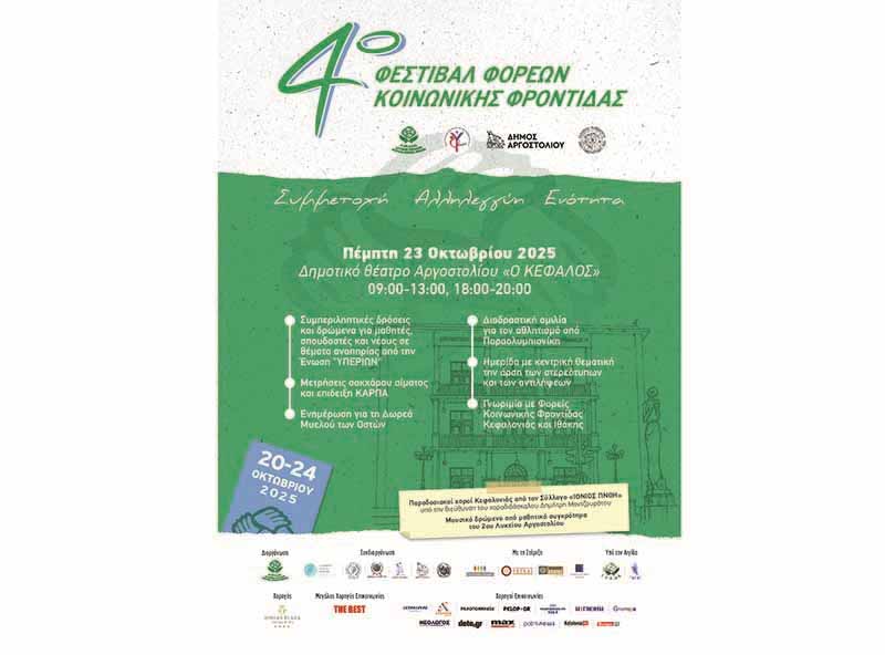 Το 4ο Φεστιβάλ Φορέων Κοινωνικής Φροντίδας φτάνει στο Αργοστόλι