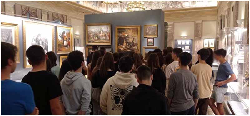 Αρχικά οι μαθητές/τριες ξεναγήθηκαν στην ιστορική και εικαστική έκθεση για τα 200 χρόνια από την Επανάσταση του 1821, με τίτλο «Αντικρίζοντας την Ελευθερία! Στη Βουλή των Ελλήνων, δύο αιώνες μετά».