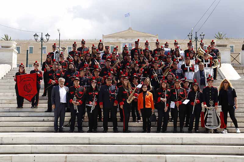 Η αρχή έγινε το πρωί αρχικά με παρέλαση στην Οδό Ερμού , από την Καπνικαρέα μέχρι το Σύνταγμα, όπου ερμήνευσε θριαμβευτικά εμβατήρια δημιουργώντας αίσθηση στον κόσμο που είχε κατακλύσει την περιοχή για να απολαύσει τις μελωδίες από τις Φιλαρμονικές που ήταν εκεί.