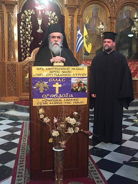 Στον κατάμεστο Ιερό Ναό του Αγίου Σπυρίδωνος Πύργου, την παρελθούσα Κυριακή 28 Μαίου ε.έ, με τις ευχές του Σεβασμιωτάτου Μητροπολίτου μας κ.κ. Γερμανού, τιμήθηκε για τρίτη συνεχή χρονιά η θλιβερή και μαύρη εκείνη Eπέτειος της Άλωσης της Πόλης πριν από 564 χρόνια στις 29 Μαΐου 1453, μία ημερομηνία κομβικής σημασίας για την Ελληνική, αλλά και την Παγκόσμια Ιστορία, καθώς σηματοδοτεί το τέλος της υπερχιλιετούς Βυζαντινής Αυτοκρατορίας-της Ανατολικής Ρωμαϊκής Αυτοκρατορίας, που αποτελεί συνώνυμο της ιστορικής πορείας του μεσαιωνικού Ελληνισμού.