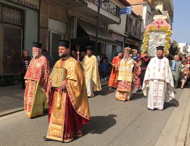 Μετά την Αναστάσιμη Δυσαρχιερατική Πανηγυρική Θεία Λειτουργία ακολούθησε πάνδημη η λιτάνευση της Ιερής Εικόνας στους κεντρικούς δρόμους του Πύργου, κάτω από τους υπέροχους ήχους της Φιλαρμονικής Εταιρίας Πύργου «ΑΠΟΛΛΩΝ», υπό την διεύθυνση του Αρχιμουσικού κ. Ευστάθιου Θεοδόση, παρισταμένων εκπροσώπων των Πολιτικών και Στρατιωτικών αρχών της πόλεως.