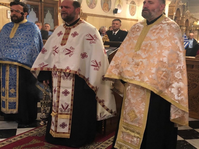 Η λαμπρή αυτή εορτή ξεκίνησε με την τέλεση του Πανηγυρικού Εσπερινού για την εορτή της Αγίας Σκέπης της Θεοτόκου, ενώ ο Εφημέριος του Ναού π. Νικόλαος Κατσηδήμας, ανοίγοντας στην συνέχεια την εκδήλωση τόνισε τα εξής: «Δεν είναι τυχαίο ότι οι δύο σημαντικότερες Εθνικές εορτές του Έθνους μας, έχουν το ιδιαίτερο χαρακτηριστικό να συνεορτάζονται με μία γιορτή της Παναγίας, οποία είναι στηριγμός και ελπίδα του Έθνους μας! Την 25η Μαρτίου εορτάζουμε τον Ευαγγελισμό της Θεοτόκου και την 28η Οκτωβρίου την Αγία Σκέπη της Θεοτόκου.