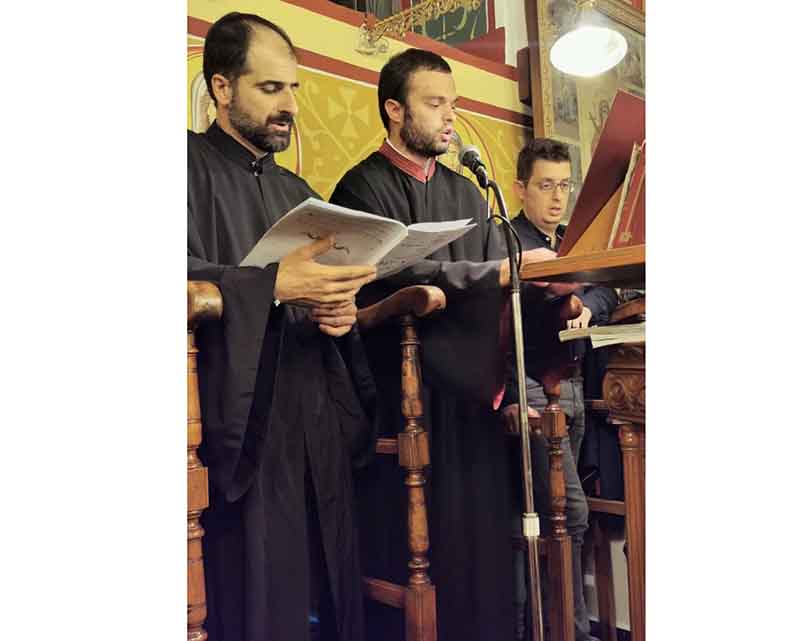 Τον δεξιό χορό των Ιεροψαλτών διεύθυνε άριστα ο κ. Γεώργιος Παπαγεωργίου, λαμπαδάριος του Μητροπολιτικού Ιερού Ναού Αγίου Νικολάου Πύργου και καλλιτεχνικός διευθυντής της Σχολής Βυζαντινής Μουσικής της Ιεράς Μητροπόλεώς μας, ενώ τον αριστερό χορό διεύθυνε επάξια ο κ. Νικόλαος Αγγελόπουλος, πρωτοψάλτης του εορτάζοντος Ναού. Επίσης συμμετείχαν πολυάριθμοι μαθητές της ως άνω Σχολής της οποίας στόχος δεν είναι μόνο να βγάλει άριστα καταρτισμένους Ιεροψάλτες πράγμα στο οποίο έχει διακριθεί μέχρι σήμερα χάρις το ανύστακτο και ακάματο ενδιαφέρον του Σεβασμιώτατου Μητροπολίτου μας κ.κ. Γερμανού, αλλά να διατηρήσει και να μεταλαμπαδεύσει την γνήσια εθνική Μουσική Παράδοσή μας, που κληροδοτήθηκε ως πολύτιμη και ιερή παρακαταθήκη στις νέες γενιές, στα νέα παιδιά στους μαθητές της Σχολής, οι οποίοι όταν αποφοιτήσουν λαμβάνουν πτυχία, αναγνωρισμένα από το Υπουργείο Πολιτισμού.