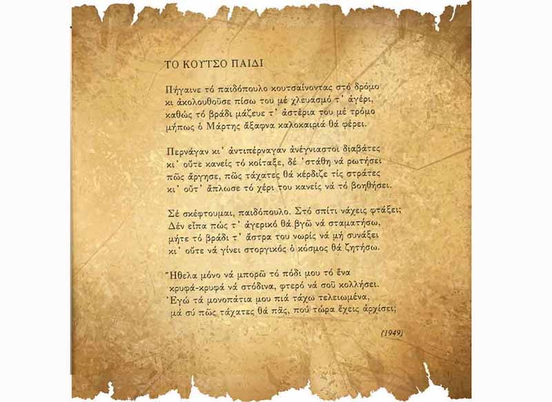 Κάτι τέτοιες ώρες έρχεται στο μυαλό μου "Το Κουτσό Παιδί" του μεγάλου Τάκη Δόξα.