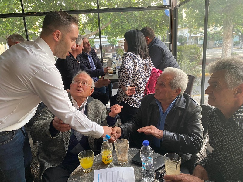 Με καθημερινό προσιτό λόγο κάνει τις επαφές του στην τοπική κοινωνία, στους επαγγελματίες της τοπικής αγοράς, στους εκπροσώπους συλλόγων και φορέων που συναντά, στους εργαζόμενους της αγροτιάς του ιδιωτικού και του δημόσιου τομέα στους νέους και τις νέες που θα τον παροτρύνουν να συνεχίσει τον αγώνα του σε καθένα που θα του σφίξει το χέρι με συναίσθημα αγάπης και εκτίμησης.