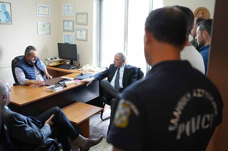 Κατά την επίσκεψη του κ. Αβραμόπουλου στο κτίριο των υπηρεσιών συναντήθηκε με τον Διοικητή του Τμήματος Ασφαλείας, Αστυνόμο Α’ κ. Χρήστο Αλεξανδρόπουλο, την Διοικήτρια του Τμήματος Τροχαίας, Αστυνόμο Α’ κ. Μαρία Στάικου, την Διοικήτρια του Αστυνομικού Τμήματος, Αστυνόμο Β’ κ. Διονυσία Κιάογλου.