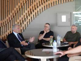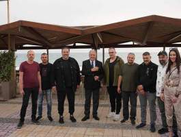 Στην παραλία Κουρούτας συναντήθηκε με τον Πρόεδρο του Συλλόγου Εστίασης του Δήμου Ήλιδας κ. Βασίλη Νιπεργιάλη, τον Αντιπρόεδρο κ. Γιώργο Σωτηρόπουλο, τον Ταμία κ. Γιάννη Κότσιφα και τα μέλη κ.κ. Νίκο Τσαγρή, Στέλιο Ρέπεση και Τάσο Κόκλα.