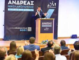 Πάμε για μεγάλη νίκη την Κυριακή. Πάμε για να δώσουμε το μήνυμα της αυτοδυναμίας» κατέληξε την ομιλία του καταχειροκροτούμενος ο υποψήφιος βουλευτής Ηλείας.