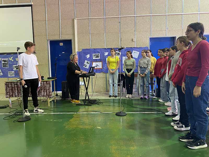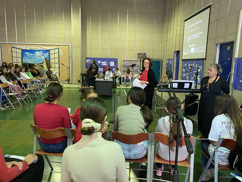 Η εκδήλωση πλαισιώθηκε από τραγούδια που απέδωσε η χορωδία του σχολείου υπό τη διεύθυνση της κ. Κωνσταντίνας Σακκά- Κυρίτση.