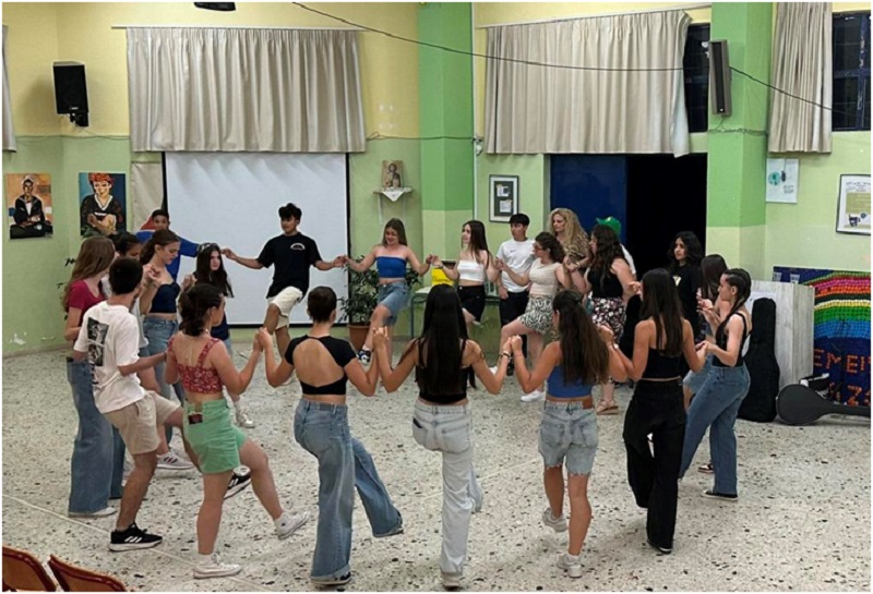 Η εκπαιδευτικός φυσικής αγωγής κ.Μουρούτη με την χορευτική ομάδα του σχολείου μας απέδωσε μέσω του χορού τη σύζευξη της νέας γενιάς με την παράδοση και την εκφραστική δυναμική της τέχνης του χορού.