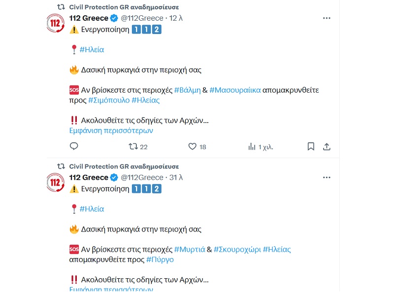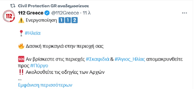 Πολύ υψηλός (κατηγορία 4) προβλέπεται απότη Γενική Γραμματεία Πολιτικής Προστασίας ο κίνδυνος πυρκαγιάς σε περιοχές της Περιφέρειας Δυτικής Ελλάδας όπως φαίνεται στον επισυναπτόμενο ημερήσιο Χάρτη Πρόβλεψης Κινδύνου Πυρκαγιάς για την Παρασκευή 21-06-2024.Εφιστάται η προσοχή στους πολίτες να είναι προσεκτικοί και να αποφεύγουν ενέργειες που μπορούν να προκαλέσουν πυρκαγιά από αμέλεια
