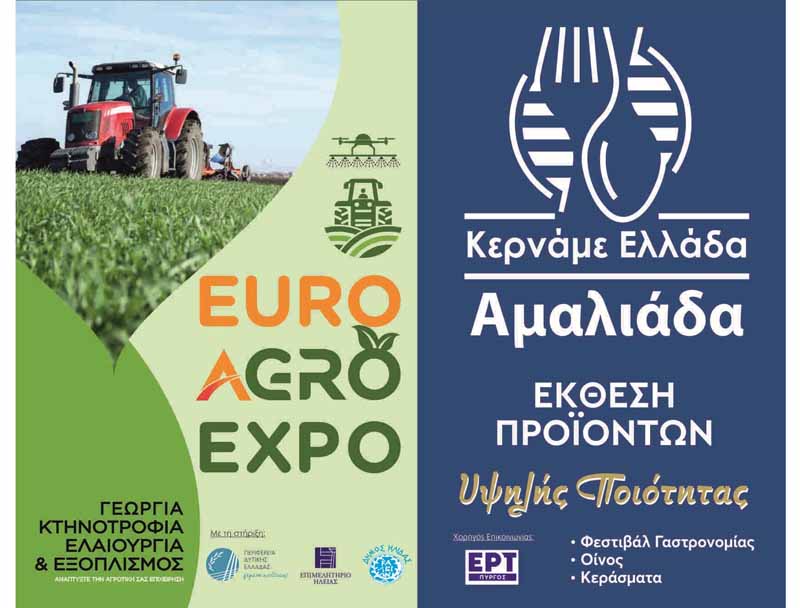 Το μεγάλο Φεστιβάλ Κερνάμε Ελλάδα Αμαλιάδα και η Αγροτική ΈκθεσηEuro Agro Expo 2024διοργανώνονται στις 24, 25 και 26 Μαΐου 2024 στο Αθλητικό Κέντρο Αμαλιάδας και αποτελούν σημείο αναφοράς για τα εκθεσιακά δρώμενατης Περιφέρειας Δυτικής Ελλάδας.
