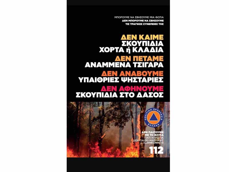 Έναρξη αντιπυρικής περιόδου: Από 1 Μαΐου έως 31 Οκτωβρίου