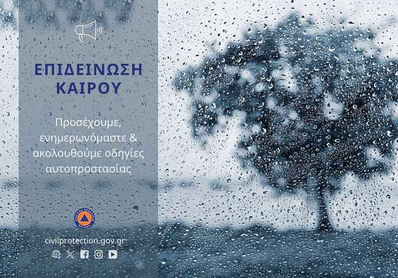 Σύμφωνα με το Έκτακτο Δελτίο Επιδείνωσης Καιρού (1/2024) που εκδόθηκε από την Εθνική Μετεωρολογική Υπηρεσία σήμερα Παρασκευή 19 Ιανουαρίου 2024 και κοινοποιήθηκε από τη Γενική Γραμματεία Πολιτικής Προστασίας επιδείνωση θα παρουσιάσει ο καιρός στη χώρα μας από τις μεσημβρινές ώρες του Σαββάτου και από τα βόρεια με αισθητή πτώση της θερμοκρασίας (της τάξεως των 8 - 10 βαθμών Κελσίου) και χιονοπτώσεις κυρίως στην κεντρική και τη βόρεια ηπειρωτική χώρα.