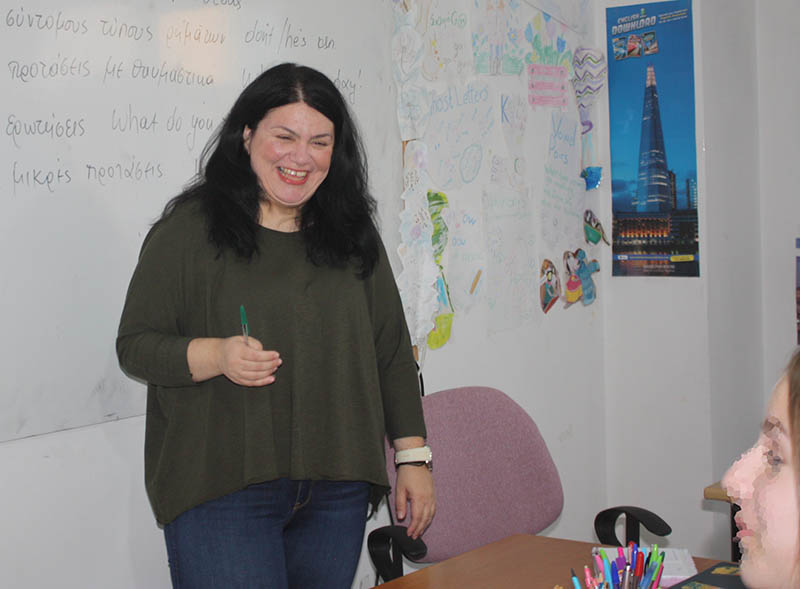 Τα μάτια της τρέχουν μια στο πόστερ της τάξης που γράφουν την παιδαγωγική άποψη του Τζον Ντιούι, του μεγάλου παιδαγωγού, μια στη συμμαθήτριά της.