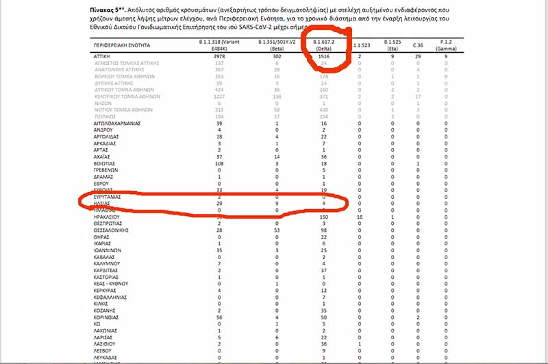 Τέσσερα κρούσματα της μετάλλαξης Δέλτα στην Ηλεία ανακοίνωσε ο ΕΟΔΥ σήμερα.