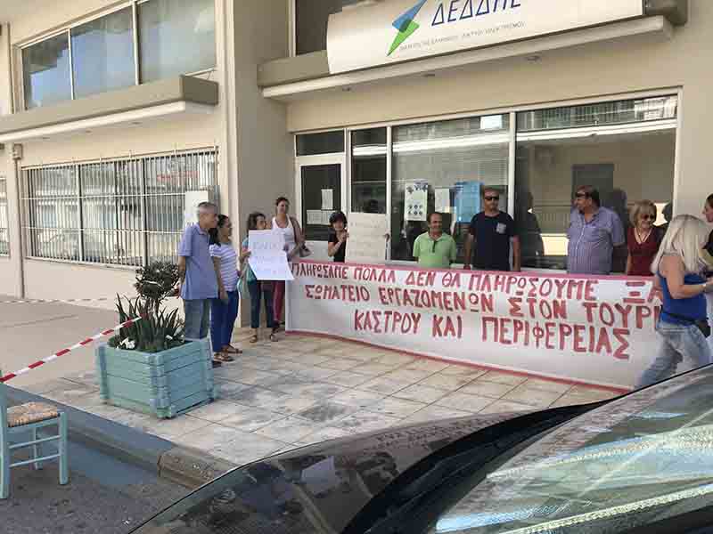 Σήμερα 25 Ιουνίου το πρωί το Σωματείο Ξενοδοχοϋπαλλήλων Κάστρου και Περιφέρειας πραγματοποίησε παράσταση διαμαρτυρίας στο υποκατάστημα της ΔΕΗ στην Αμαλιάδα, αφού ξεκίνησαν τα ειδοποιητήριά για διακοπή ρεύματος σε άνεργους ξενοδοχοϋπάλληλους.