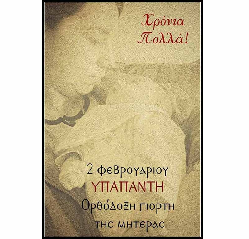 ΣΤΙΣ 2 ΦΕΒΡΟΥΑΡΙΟΥ ΕΟΡΤΗ ΤΗΣ ΥΠΑΠΑΝΤΗΣ ΤΟΥ ΧΡΙΣΤΟΥ ΕΟΡΤΑΖΕΙ Η ΕΛΛΗΝΙΔΑ ΟΡΘΟΔΟΞΗ ΜΗΤΕΡΑ ΚΑΙ ΟΧΙ ΤΗΝ ΔΕΥΤΕΡΗ ΚΥΡΙΑΚΗ ΤΟΥ ΜΑΪΟΥ ΣΤΟΝ ΙΕΡΟ ΝΑΟ ΜΑΣ ΚΑΤΑ ΤΗΝ ΘΕΙΑ ΛΕΙΤΟΥΡΓΙΑ ΤΗΣ ΚΥΡΙΑΚΗΣ ΘΑ ΨΑΛΛΕΙ ΑΡΤΟΚΛΑΣΙΑ ΚΑΙ ΕΙΔΙΚΗ ΕΥΧΗ ΓΙΑ ΤΙΣ ΜΗΤΕΡΕΣ ΘΑ ΟΜΙΛΗΣΗ Ο Κ. ΠΑΝΑΓΙΩΤΗΣ ΚΟΥΗΣ ΚΑΘΗΓΗΤΗΣ ΘΕΟΛΟΓΟΣ ΜΕ ΘΕΜΑ: «Η ΕΟΡΤΗ ΤΗΣ ΥΠΑΠΑΝΤΗΣ ΤΙΜΗ ΓΙΑ ΤΗΝ ΜΗΤΕΡΑ!» ΤΑ ΠΑΙΔΙΑ ΤΟΥ ΚΑΤΗΧΗΤΙΚΟΥ ΜΑΣ ΘΑ ΑΠΑΓΓΕΙΛΟΥΝ ΠΟΙΗΜΑΤΑ-ΚΕΙΜΕΝΑ.