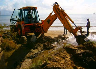 Η άνοδος της θάλασσας κατά μήκος της συγκεκριμένης ακτογραμμής, είχε δημιουργήσει σειρά προβλημάτων στους παραλιακούς οικιστές και ήδη απομακρύνονται μπάζα και ογκόλιθοι που έφραζαν την παραλία.