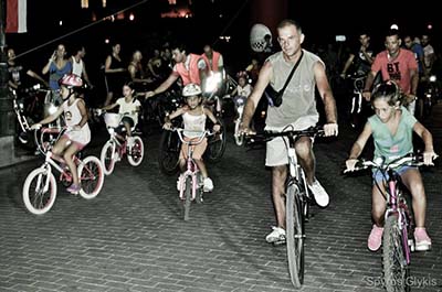 Από νωρίς το απόγευμα η πόλη της Αρχαίας Ολυμπίας είχε γεμίσει από αναβάτες οι οποίοι ετοιμάζονταν για να συμμετάσχουν στην ποδηλατική βόλτα, που είχε οργανωθεί από τους υπευθύνους του δήμου, τον ποδηλατικό σύλλογο της πόλης «Φίλοι ποδηλάτου Αρχαίας Ολυμπίας» και την εταιρεία Cyclopolis.